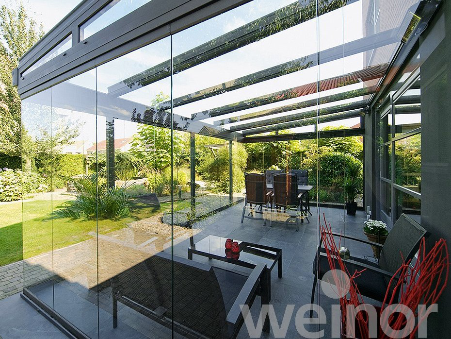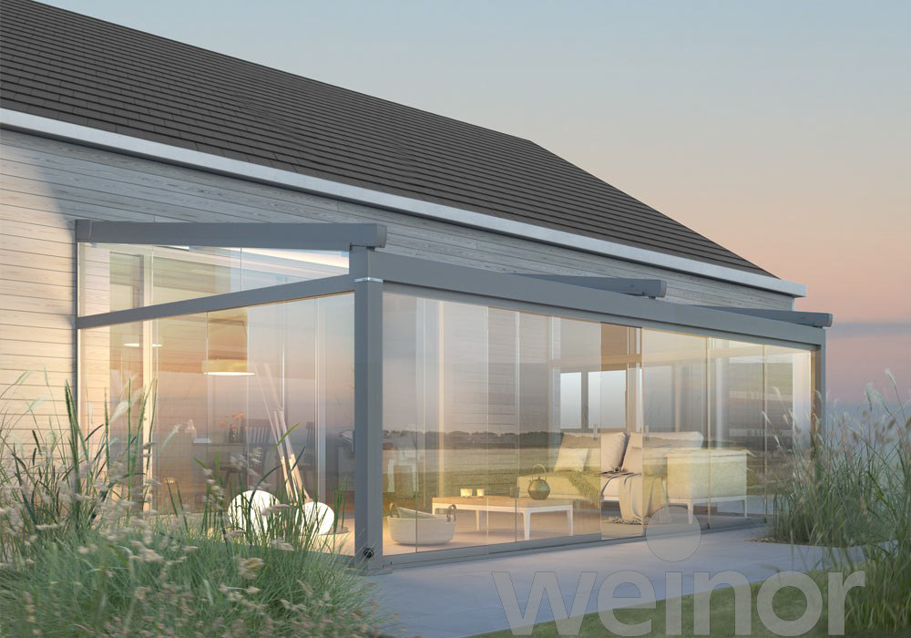 Weinor ist der anerkannte Spezialist für elegante Glas-Systeme. Diese schützen zuverlässig vor Witterungseinflüssen und ermöglichen gleichzeitig fließende Übergänge von innen nach außen. Ob als Ganzglas-Schiebewand, als flexible Seitenverglasung oder als nachrüstbare Erweiterung bestehender Terrassendächer – die Systeme schaffen offenen Wohnraum, der bei Bedarf geschützt und geschlossen werden kann.